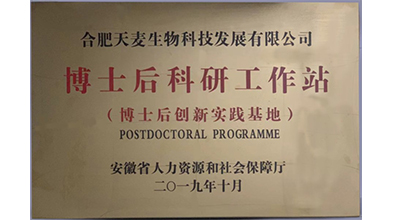 经安徽省人力资源和社会保障厅批准,天麦生物成立安徽省博士后科研工作站。