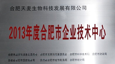 天麦生物获认定为“2013年度合肥市企业技术中心”。
