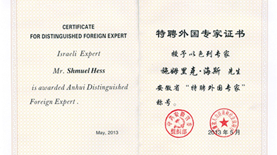 天麦生物特聘专家施姆尔·海斯博士(Dr. Shmuel Hess)获安徽省外专局认定为安徽省首批“外专百人计划”外国专家。