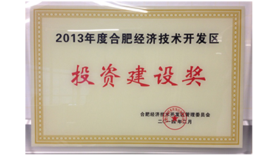 公司荣登合肥经开区2013年优秀企业榜,获合肥经开区管委会授予”投资建设奖"。